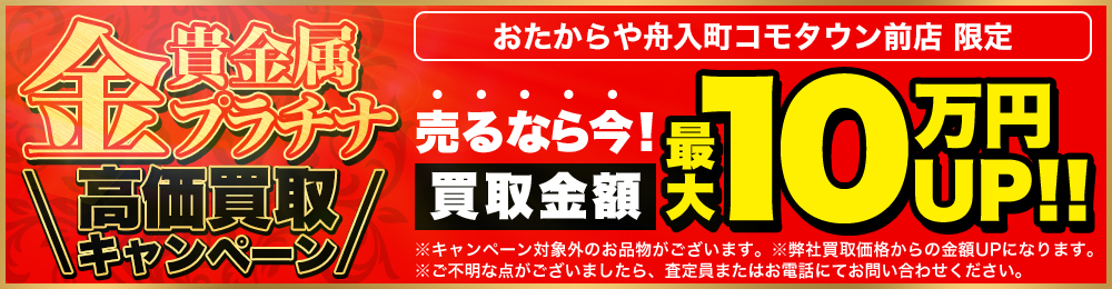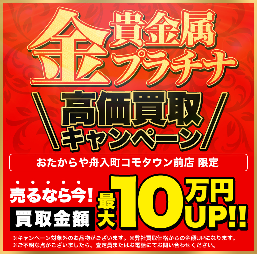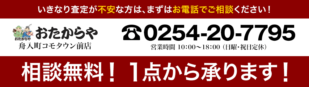 お品物お持ちの上、おたからや舟入町コモタウン前店にお越しくださいませ。